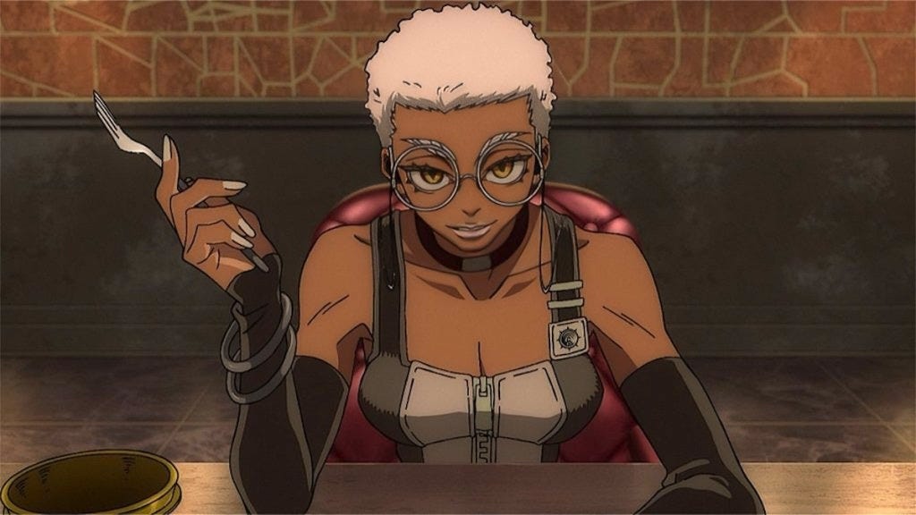 also, there’s two black characters in this anime, one man and one woman! so far they’re depicted pretty well, especially the woman, semiu (and we actually get to see her fight!), though they’re secondary characters. it’s extremely rare to see black characters in anime, even secondary world fantasy anime, so this was very cool to see!